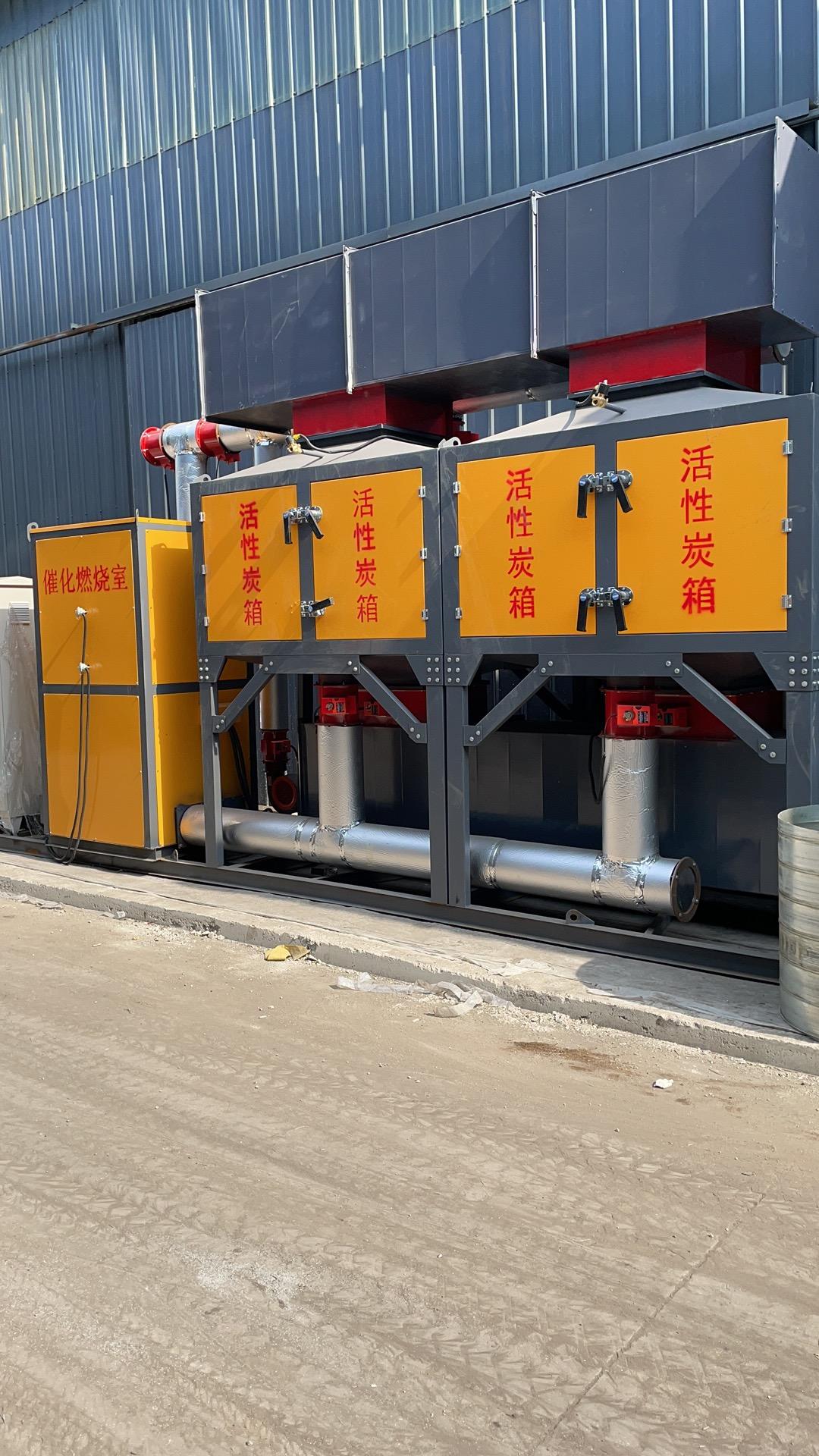 活性炭使用一段時間,吸附了一定量的溶劑后,會降低或失去吸附能力,此時活性炭需脫附再生,再生后活性炭重新恢復吸附功能可繼續使用。再生時,啟動催化燃燒裝置予熱室電源,將空氣予熱,予熱后的氣體送入吸附箱,箱中活性炭受熱后,活性炭吸附的溶劑揮發出來,溶劑經風機送入催化燃燒室燃燒,燃燒后分解生成CO2和H2O蒸汽等熱空氣,熱空氣一部分回到活性炭吸附箱繼續給活性炭加熱,叧一部分排空,熱空氣內部循環多次活性碳即可得到再生。