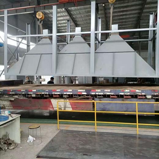 布袋除塵器的保溫層厚度為100MM,各加強筋上為50MM,保溫材料選用高溫玻璃棉(TYPE1000,δ=50),在厚度方向上分二層鋪設,層間應錯縫,錯縫距離不小于板長或板寬的三分之一,拼逢應嚴密平整,高溫玻璃棉的外層均應鋪設鍍鋅六角鐵絲網,再用自鎖墊片壓住。