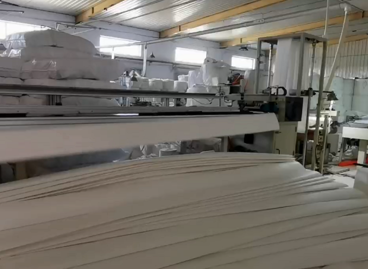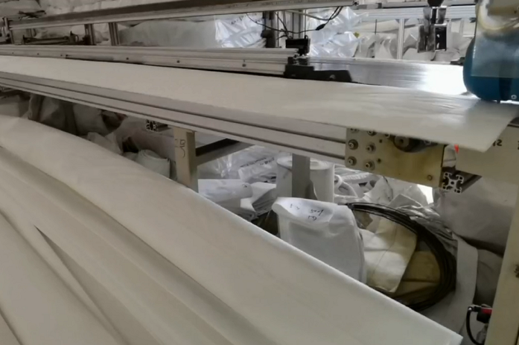 常溫布袋有滌綸針刺氈,拒水防油兩防布袋,防靜電布袋,拒水防油防靜電三防布袋以及超細纖維覆膜濾袋等材質,今天車間機器上生產的是普通滌綸針刺氈材質濾袋,133*2500mm型,普通漲圈式,這一種材質和規格型號的濾袋是目前生產單上最多的。