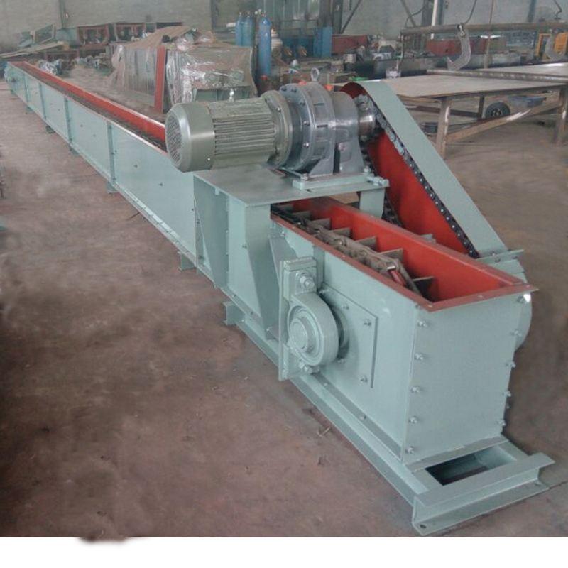 埋刮板輸送機是一種在封閉的矩形斷面的殼體內(nèi),借助于運動著的刮板鏈條連續(xù)輸送散狀物料的運輸設(shè)備。埋刮板輸送機結(jié)構(gòu)簡單,重量輕,體積小,密封性強,安裝維修方便。它不但可水平輸送,也可傾斜或垂直輸送sk多點加料,多點卸料,工藝布置靈活,全封閉輸送不污染環(huán)境。當發(fā)生過載時,抗沖擊繼電器馬上切斷電源,保護整機完好。我公司研制的新型埋刮板輸送機采用板式刮板、頭部卸料口加長、卸料拍打裝置、中間寬卸料口以及加大彎曲段圓弧半徑等措施,成功的解決了頭部積料和尾部積料,同時MC、MZ埋刮板輸送機彎曲段不易堵料, 大的提高了埋刮板輸送機的使用可靠性。技術(shù)性能優(yōu)于其它廠家生產(chǎn)的普通型埋刮板輸送機,外形尺寸與普通埋刮板輸送機基本相同。